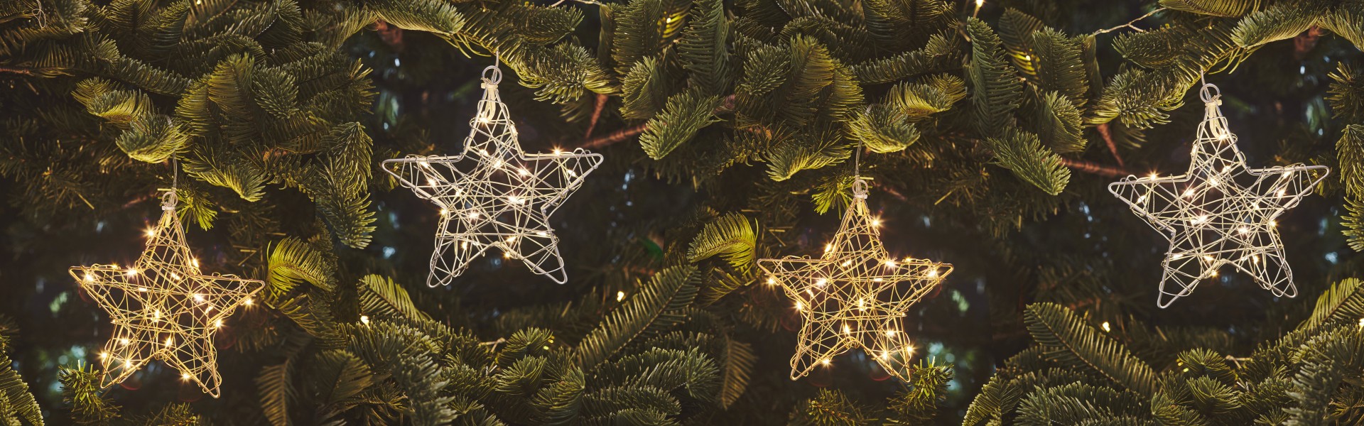 50 warm white LEDsAvailable in three colours: Black, Gold and SilverBattery poweredRequires 3 x AA batteries (not included)Freestanding ornamentIllumi..