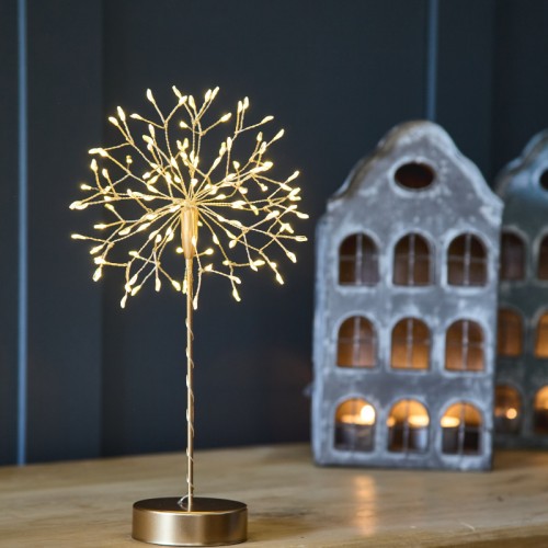 Available in two colours: Black and Gold80 warm white LEDsBattery poweredRequires 3x AA batteries (not included)Height: 40cmWidth: 30cmMaterial: Metal..